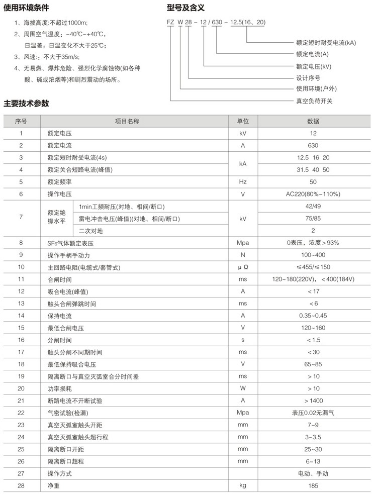 FZW28-12户外高压交流真空负荷开关