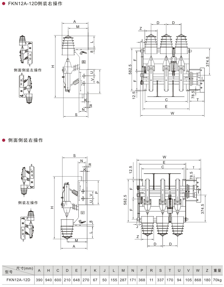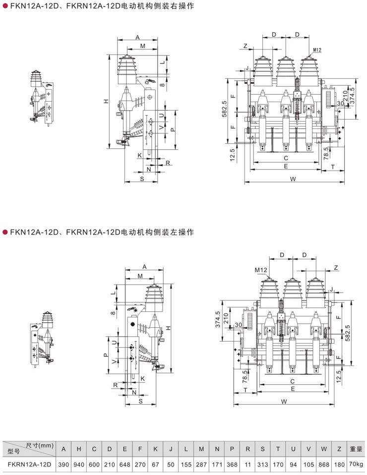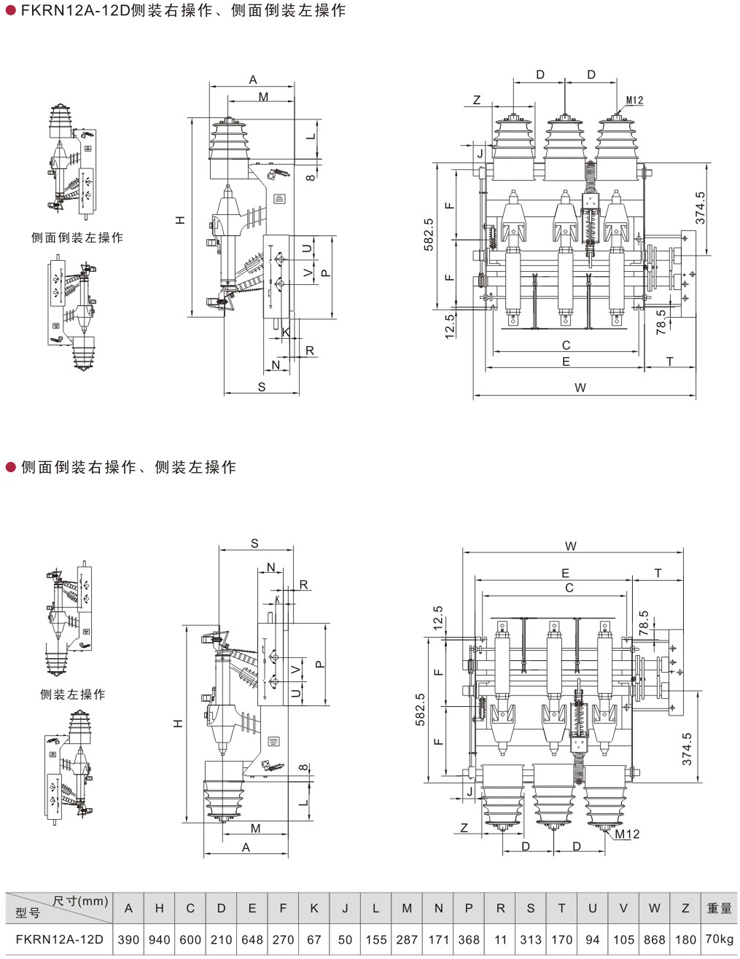 VS1(VBM7)-12侧装式户内高压真空断路器