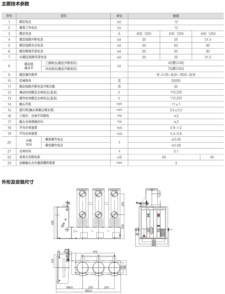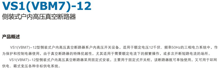 VS1(VBM7)-12侧装式户内高压真空断路器