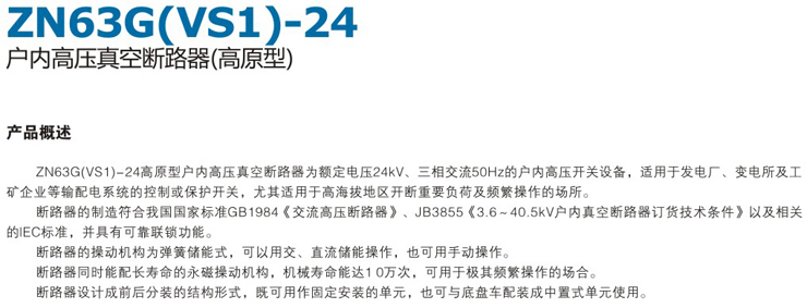 ZN63G(VS1)-24户内高压真空断路器(高原型)